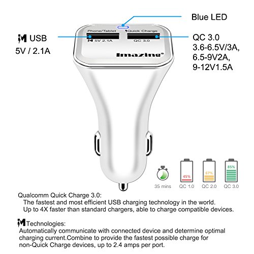 Quick Charge 3.0 Technology Port: Built-in the QC 3.0 Tech charges compatible devices 4X faster than standard chargers and 40% faster than QC 2.0 Tech. Backwards compatible with all versions of Qualcomm Quick Charge technology (1.0, 2.0 & 3.0).