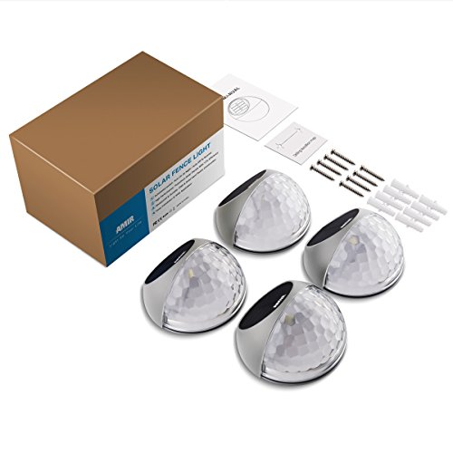 AMIR Solar Fence Lights Outdoor, 4 Pack Deck Lights, Auto On/ Off Dusk to Dawn Post Lights, Waterproof Solar Garden Decorative Step Lights, for Wall, Pathway, Driveway, Patio, Yard, Garden (Silver)