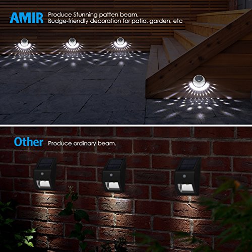 - EASY TO INSTALL: AMIR Solar Lights is very easy for you to install. No wiring is required to install this solar powered security light. Simply install the solar light under the sunlight without any shade.