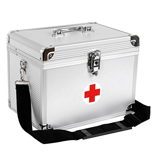 -. Title : Songmics Erste Hilfe Koffer Medizin-Box Aufbewahrungsbox Medikamentenbox Arzneimittel-Box Medizinbehälter mit Tragegriff Tragegurt Aluleisten ABS silbrig JBC361S