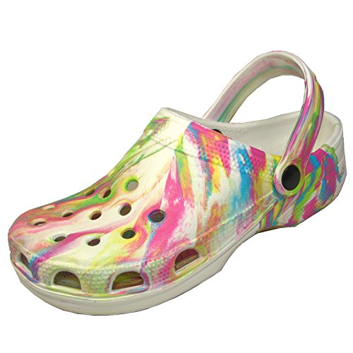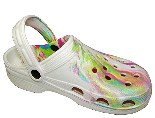 New Women's White Tie Dye Garden Shoes Clogs Sandals Size 6