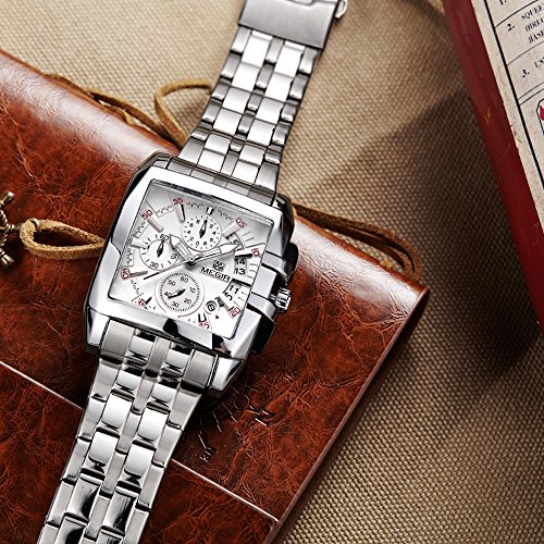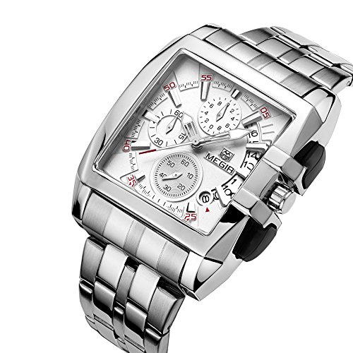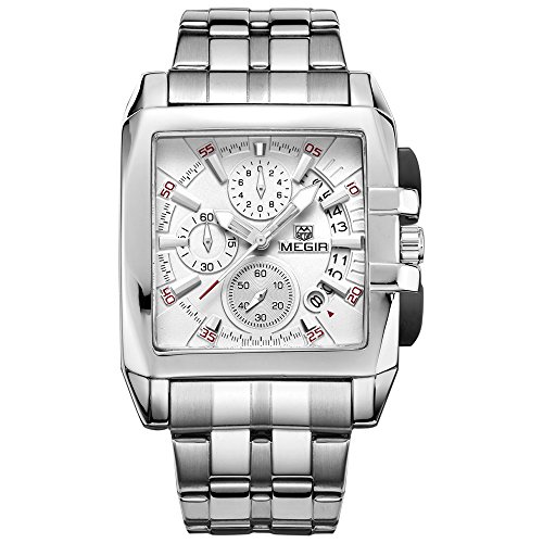 -. Title : Megir Mens White Dial Chronograph Military 6 Hands Display Quartz Wrist Watch
