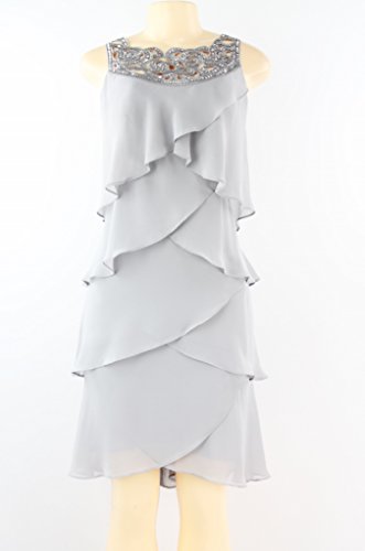 S.L.Fashions Frost Scroll Cutout Women's Petal Tiered Dress Gray 16