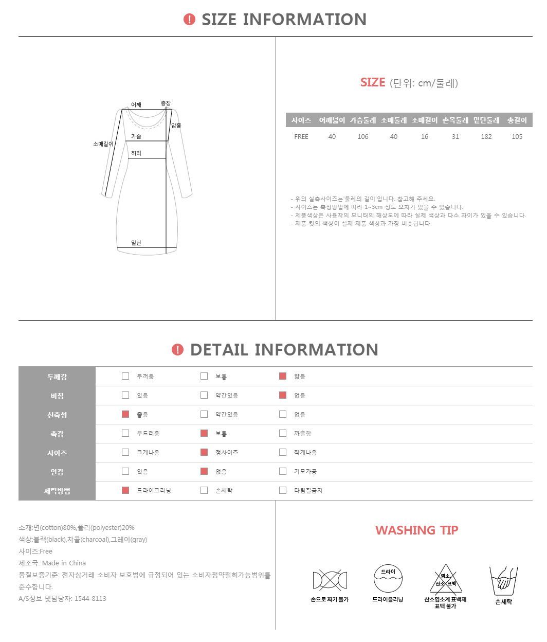 MD COMMENT 심플하게 예뻐보이고 싶은 날, 기분 좋게 외출하기 좋은 원피스 소개할게요 시원시원한 바람 타고 온 듯한 살랑한 실루엣이 여름의 설레임을 담아내며 데일리 스타일링에 있어서 언제나 편안함을 주는 아이템이랍니다:) DETAIL TIP 무더운 여름에도 쿨-하게 즐길 수 있는 코튼과 바디라인에 차르르 감기는 촉촉한 폴리 혼방의 소재로 무더운 여름에도 산뜻하고 쾌적하게 매치업 하기 좋으며 살랑살랑 바람에 휘날리는, 하늘하늘 걸음마다 기분 좋게 살랑이는 핏이 여리여리한 감성과 우아한 매력을 동시에 어필해드린다는 사실~ 피트되는 부분 없이 내추럴한 루즈핏이라 미운 군살 쏘-옥 커버해드리며 자연스레 플레어지는 밑단이 사랑스러운 분위기까지 살려드린답니다:) 움직임에 따라 자연스러운 머메이드 라인이 연출되어 심플한 듯 하면서도 정말 깔끔하게 포인트 주기 딱 좋아 어떻게 입든! 누가 입든! 아름답고 자신감 있는 데일리 스타일링을 완성하실 수 있어 적극 추천드릴게요-♡ COLOR,SIZE TIP 컬러는 블랙,차콜,그레이 3color로 구성되어 있으며, 모델의 착용 컬러는 그레이 입니다.