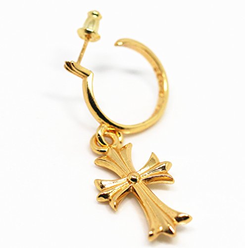 -. Title : 「silverkyasya」シルバー925素材 金18KGP ゴールドクロスフープピアス フープ タイニークロス ピアス 925 ユニセックス ピアス 片耳 プレゼント 巾着ポーチ付き