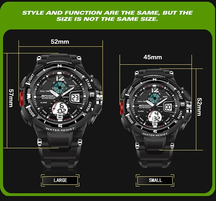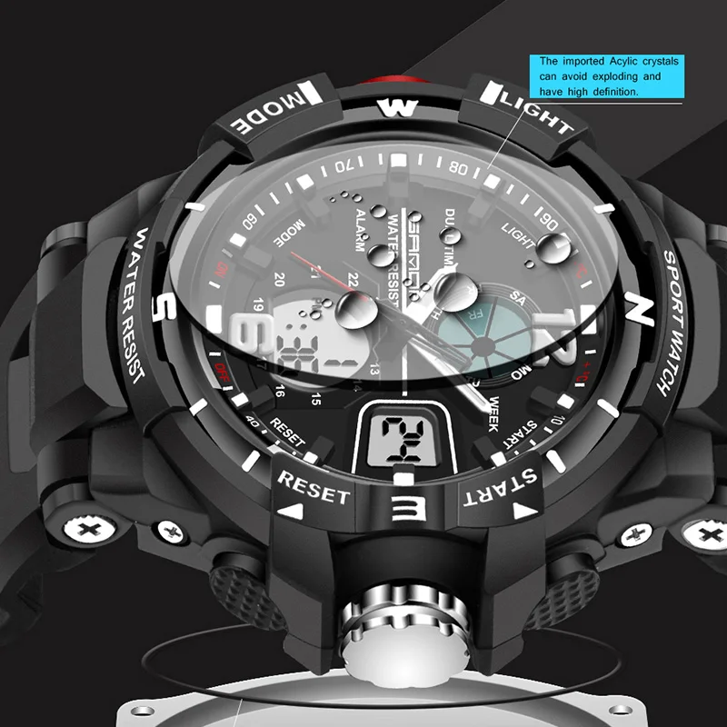 Feature:Water Resistant,LED display,Luminous,Stop Watch,Back Light,Complete Calendar,Shock Resistant,Chronograph,Perpetual Calendar,Auto Date,Week Display,Alarm