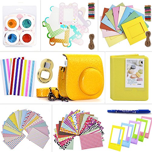 Shaveh Fujifilm Instax Mini 8/8+ Mini 9 Accessories, 11 in 1 Camera Set Include Camera Case/Album/Selfie Lens/Colored Filters/Wall Hang Frames/Film Frames/Border Stickers/Corner Stickers/Pen (Yellow)
