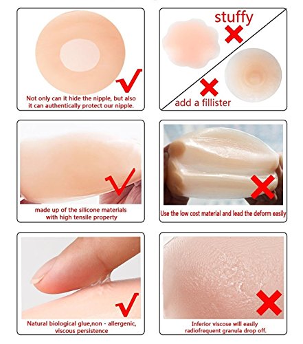 -. Feature : MATERIAL - Healthcom Nipple Cover Bra made of high quality silicone, 100% pure medical-grade silicone material hypoallergenic adhesive for no itch wear. / Healthcom silicone nipple covers - Self-adhesive,reusable,light hypoallergenic and Waterproof,perfect under t-shirts, sheer tops, dresses and swimwear. Guaranteeing a secure fit all day or night long. They are reusable, and can be worn up to 30 times! / COMFORTABLE AND PORTABLE - Healthcom Nipple Cover Bra designed to be small enough to fit in a handbag,and they are so comfortable you will forget you have them on. / With thinner petal edges for discreet coverage,best gift choice for yourself or your girlfriend. / PACKAGE CONTENT - One pair circle designed and one pair flower designed Healthcom self-adhesive Silicone Nipple Cover Bra,Total 4 Pieces.