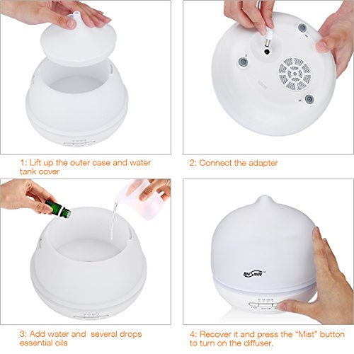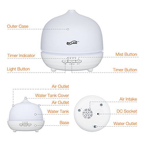 Essential Oil Diffuser, Housmile 300ml Ultrasonic Aroma Cool Mist Humidifier with Color LED Lights Changing for Home, Yoga, Office, Spa, Bedroom, Baby Room