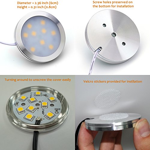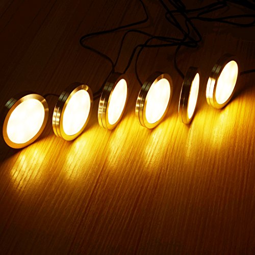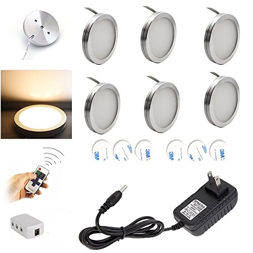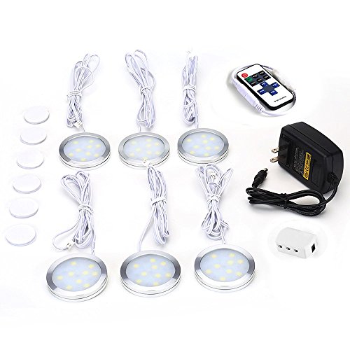 Aiboo Dimmable LED Under Cabinet Kitchen Counter Showcase Lighting Fixture with Plug In and Dimmable Wireless RF Control, 6 Ultra Slim Puck Lights Kit (Warm White)