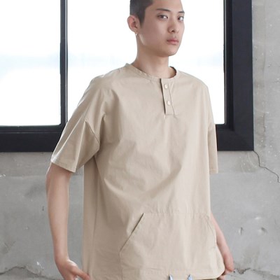SOLID HENRYNECK T-SHIRTS [COLOR] BEIGE [SIZE/단면 cm] M: 어깨 63/ 가슴 60/ 총장 72/ 소매길이 19/ 소매통 22 L: 어깨 65.5/ 가슴 63/ 총장 74/ 소매길이 20/ 소매통 23 [FABRIC] COTTON 100% [DESCRIPTION] 적당히 파스락 거리는 소재를 사용하여 한여름까지 시원한 적당한 루즈핏의 헨리넥 티셔츠. 헨리넥 디자인으로 착용시 불편한점이 없으며, 칼라 포인트가 들어간 스트링이 있어 캐주얼한 느낌. [MODEL SIZE] 188cm / 72kg / L사이즈 착용 [WASHING DIRECTION] 손세탁 권장 DO NOT BLEACH DO NOT TWISTING