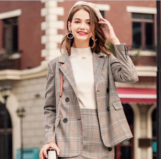 ・キーワード:大人可愛い キレイ チェック柄 チェック ジャケット OL オフィス 2018年秋トレンド