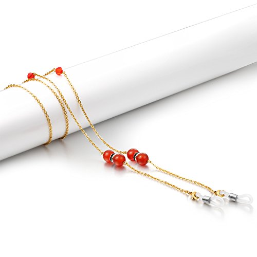 -. Feature : Eyeglass chains color: golden. / Eyeglass holder beads color: red , black (Please choose your favorite color). / Eyeglasses chain total length: 80cm/31.5in/2.6ft . / Beaded eyeglass straps main material: stainless steel, which is environmental-friendly and non-toxic. / Eyeglass chains beads suitable for: women and girls.
