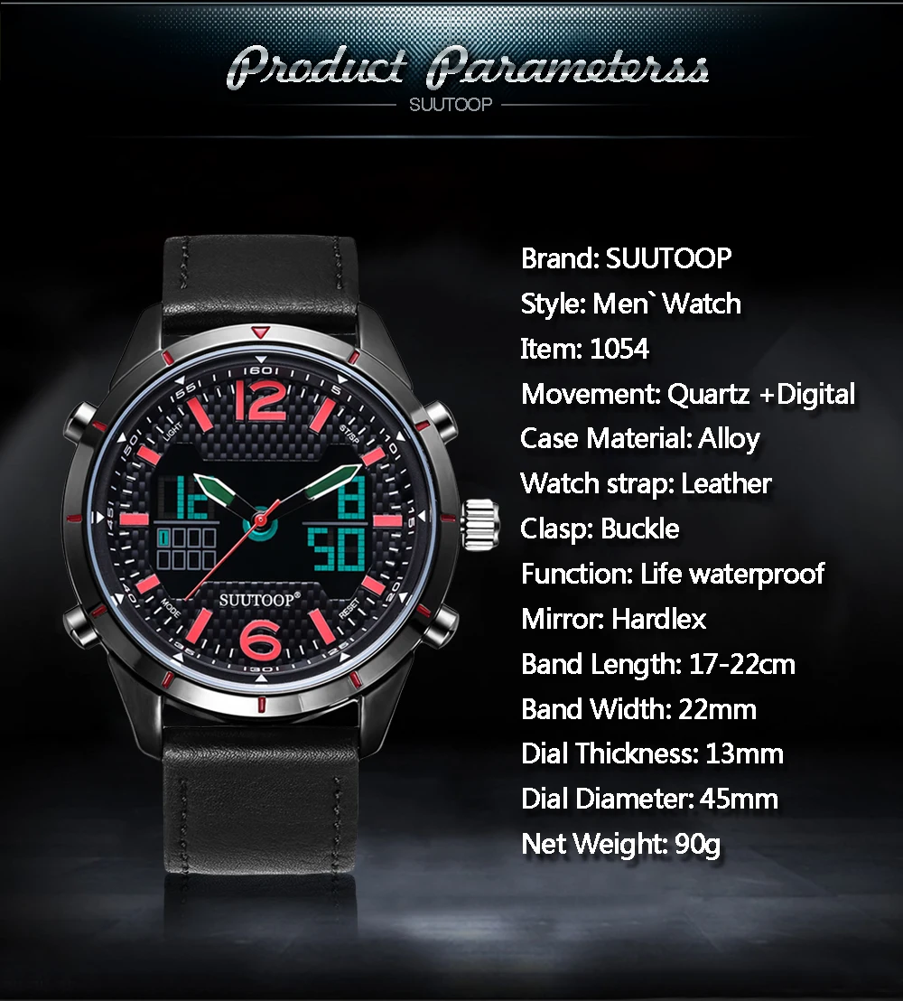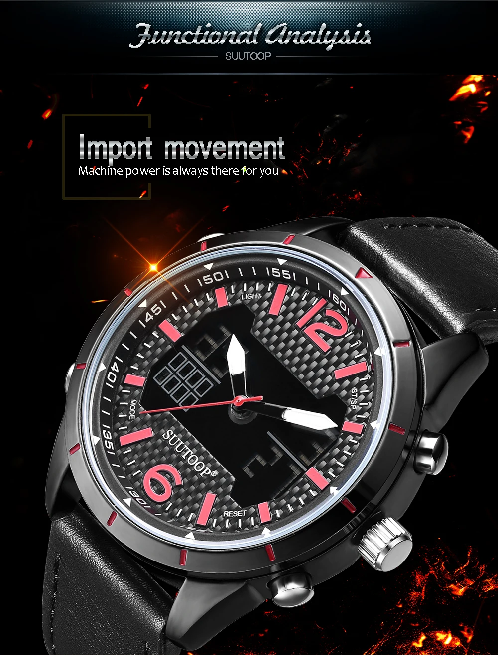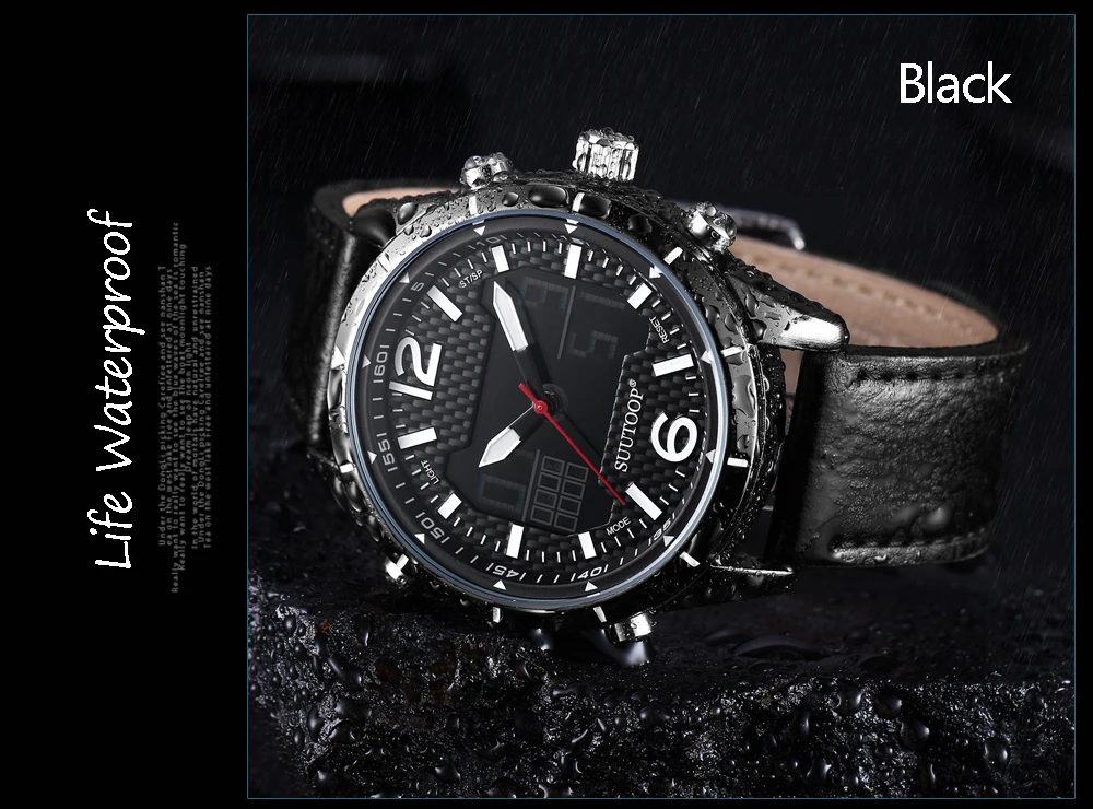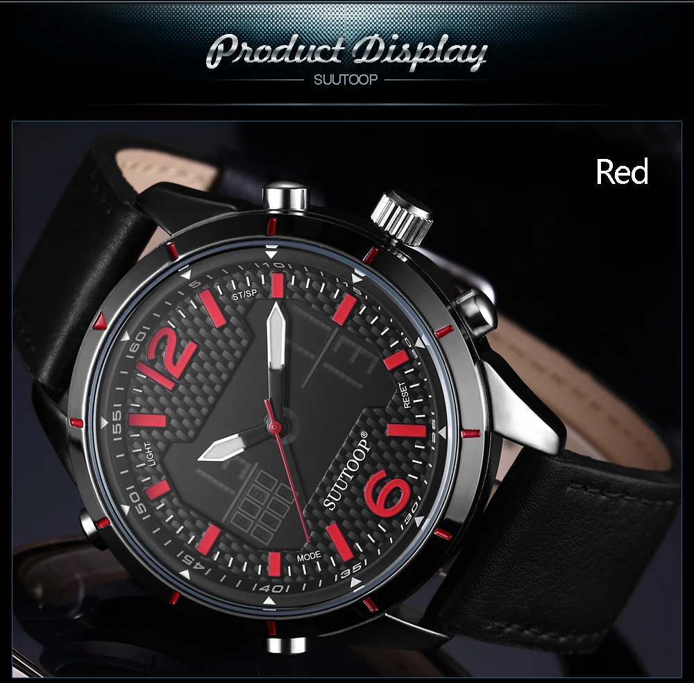 Feature:Complete Calendar,Shock Resistant,Week Display,Water Resistant,Stop Watch,Back Light,LED display,Alarm