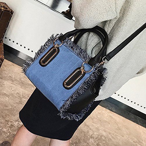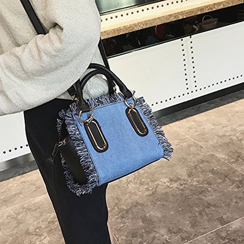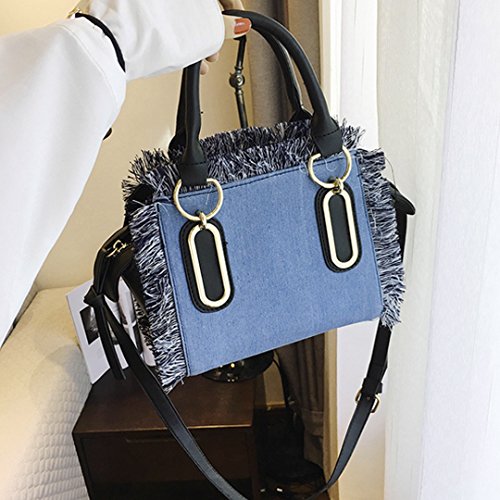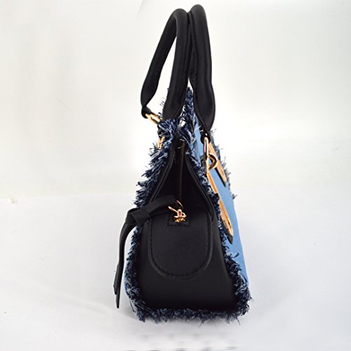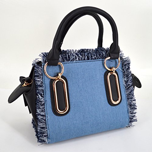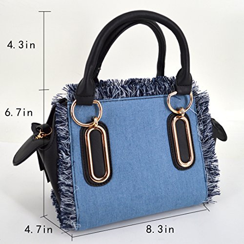 -. Feature : Made of high quality PU leather; very glossy, comfortable and durable. / Product size: 8.3* 4.7 * 6.7in. Handle height: 4.3in. Small and exquisite, can hold phone, wallet, sunglasses, cosmetics, and so on. / Solid denim bag with tassels looks fashionable and stylish, decor yourself full of personality. / Long adjustable strap not only adds beauty, but also makes it so practical and convenient to carry. / Great accessory for girls and women. Perfect for school, office, shopping, sport, beach and travel use.