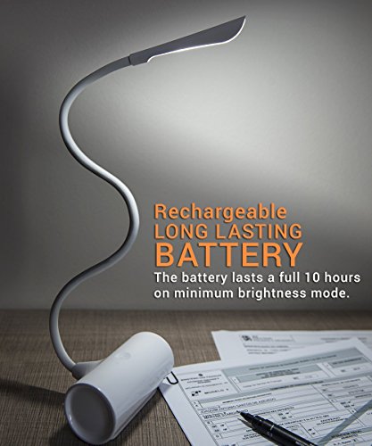 Cordless Desk Lamp, Portable Small Desk Lamp with Rechargeable Battery, Gooseneck Book Light & Table Lamp with Touch Sensor (White)
