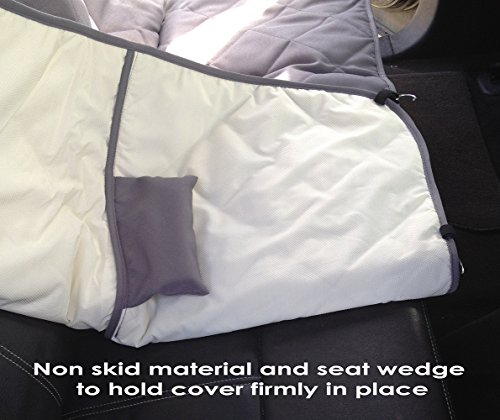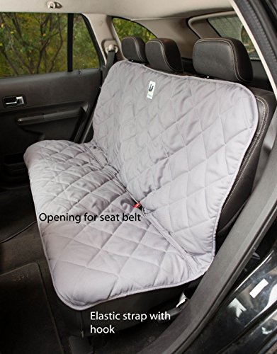 - Feature : PERFECT FIT - One size fits over 75-80% of cars on the market.(really...we checked the fit exhaustively). The dimensions of this dog car seat cover is "Seat back 54" x 26" and "Seat surface area 54" x 19" / NO SLIP - We've designed this dog seat cover so that there is no sliding around for your dog when it jumps into the car or when you make a sharp turn. This seat cover has features a non skid backing material, elastic straps with hooks, and adjustable headrest straps to keep it firmly in place. / HIGH QUALITY - This is a premium car seat covers for dogs that is durable and rugged. The thick padded quilted nylon not only protects your seats, but is also comfortable for your dog. This seat protector will protect your backseat from dog hair, dirt, and toe nail scratches for years to come. / MACHINE WASHABLE - Unlike many other dog seat covers for cars, the 3 Dog Back Seat Protector is machine washable. After it's been washed it will not fall apart, its seams will not come undone, and it will not shed material onto your car. / 100% MONEY BACK GUARANTEE - With no questions asked, if you're not completely happy and satisfied with the results of this product, you may return the item and we'll give you a full refund. So, click the "add to cart" button now and protect your car seats today!
