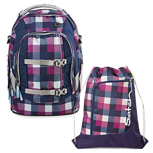 -. Title : satch by Ergobag Berry Carry Karo Lila Blau gepixelt 2-teiliges Set Rucksack & Sportbeutel