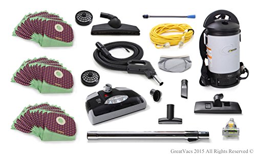 This is the Brand New Fully Loaded New ProTeam Sierra backpack vacuum with the Heavy Duty ProTeam 1 - 1/2" attachment set, which includes: Multi surface Floor tool, Duster brush, Crevice tool, Upholstery tool, 2 tool extension wands, heay duty tool hose, 50' cord, and 2 additional bags! The Sierra comes with a 5 year motor warranty.