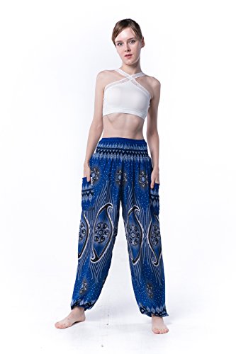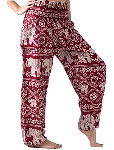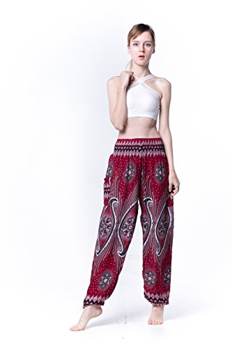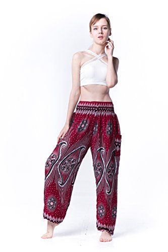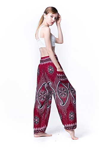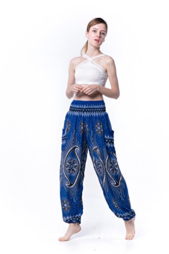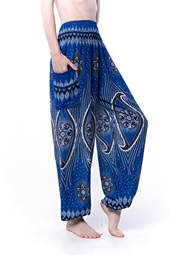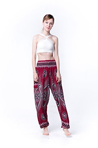 -. Feature : SPOT ON FIT: These regular ONE SIZE FIT ALL Thai Harem pants measure about US size 2-16: Stretchy Waist approx 22" or 55cm Stretching to 42"( 106 cm ), Model Height 5' 8" (174cm) and Elastic ankle bands approx 14" These Thai Harem Pants will comfortably fit XS-L sizes with 2 POCKETS. / STAY NICE AND COOL: Our high quality Thai Harem pants made from 100% Rayon with unique design by Fair Trade Manufacturer from Thailand and 100% strong and light weight breathable Rayon material. And with the fabric being completely non-irritating, perfect for Indoor and Outdoor Exercise (Yoga Exercise, Pilates, Zumba, Beach, Festival, Holiday Relaxation, Pajamas or Ordinary Day Etc.) You'll comfortably wear it all day long. / LOOK SIMPLY STYLISH: Thai Harem pants, Ideal for hot weather due to the light weight breathable Rayon material while maintaining superb comfort. Add Hippie style to your wardrobe while maintaining a loose fitting soft comfy feel. / HIGH QUALITY FINISHING: Top quality authentic 100% Rayon Thai Harem pants for men and women! Super-comfortable and versatile- wear them for any occasion! With great stitching, perfectly-lined hems, and material that clean well in the wash. / PERFECT GIFTS: Buy 2 or more casual pants for yourself and the ones you love! Friends and family will appreciate these stylish pants. Chuck the old grey brown and black clothes to the back of the closet and bring some hippy style into your life. Unisex maxi harem pants are for women, men, teens, girls and boys. These balloon pants even look great with a plain black or white T shirt. The best gifts for every special moment with unique and beautiful design. Click 'Add to Cart' now for the best