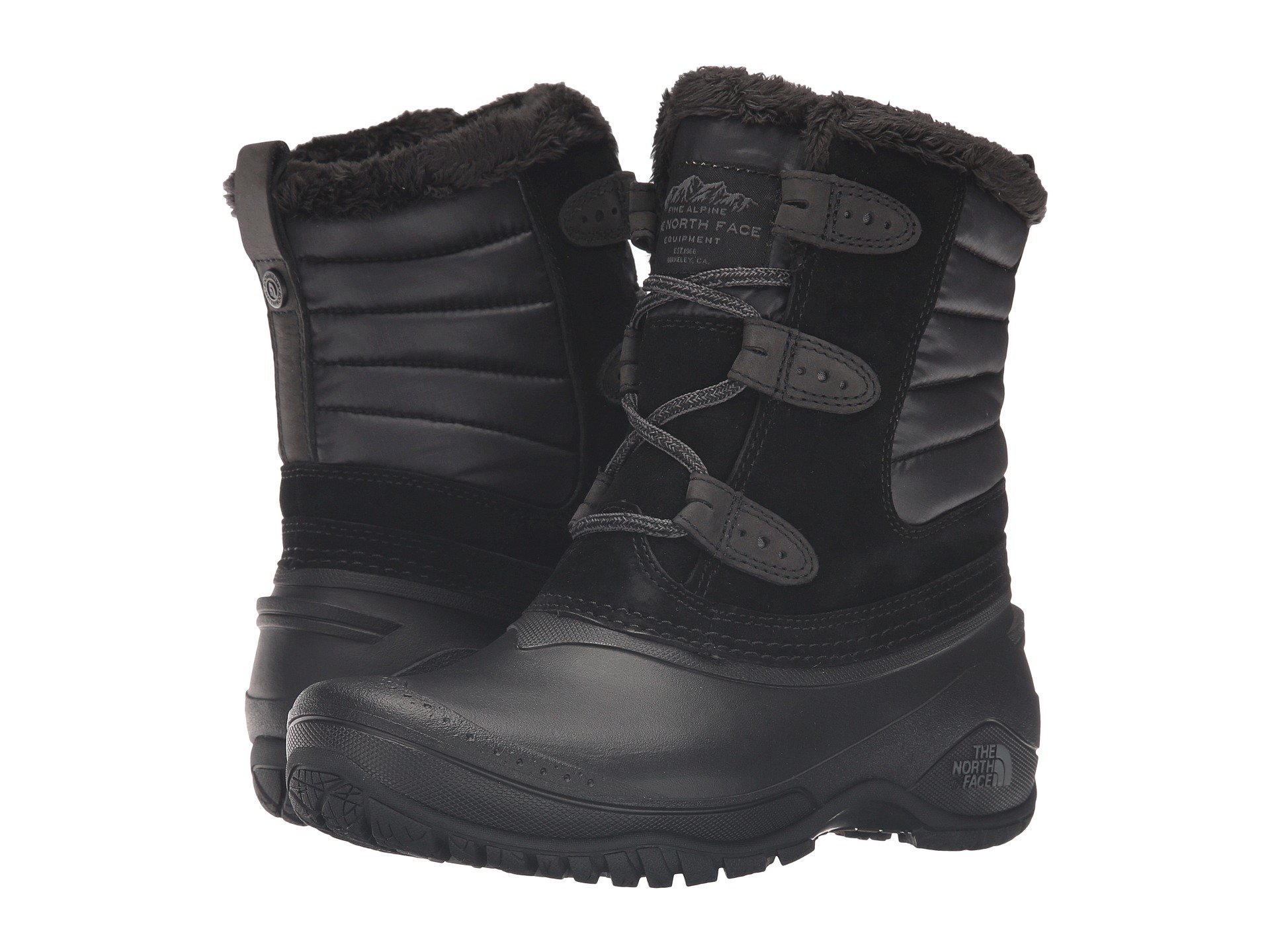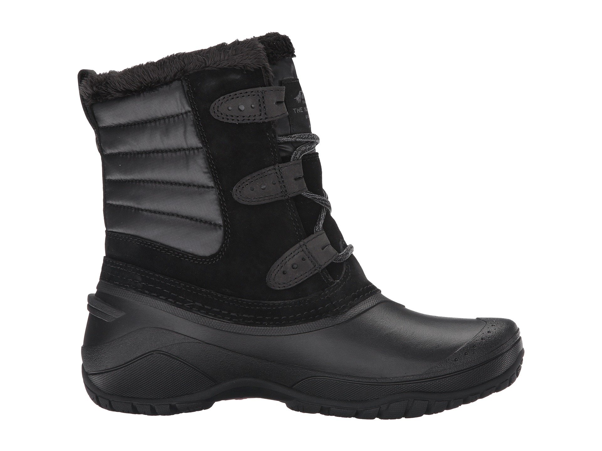 | Product Information SKU: #8711453Please note that this style is either discontinued and/or from a previous season.Mother Nature has nothing on you when you face cold weather in The North Face? Shellista II Shorty boot. Waterproof construction.200 g PrimaLoft? Silver Insulation Eco keeps feet warm.Waterproof, BLC-compliant suede leather and water-resistant, 100% recycled P.E.T. ripstop fabric uppers. Women's-specific, injection-molded, waterproof TPR shell protects feet. Lace-up closure.Fuzzy faux fur lining offers a great in-shoe feel. Durable TNF Winter Grip? rubber outsole with temperature-sensitive IcePick? lugs for exceptional traction in cold-weather conditions.Imported. Product measurements were taken using size 8, width B - Medium. Please note that measurements may vary by size.Measurements: Weight: 1 lb 2 oz Shaft: 7 3?4 in |