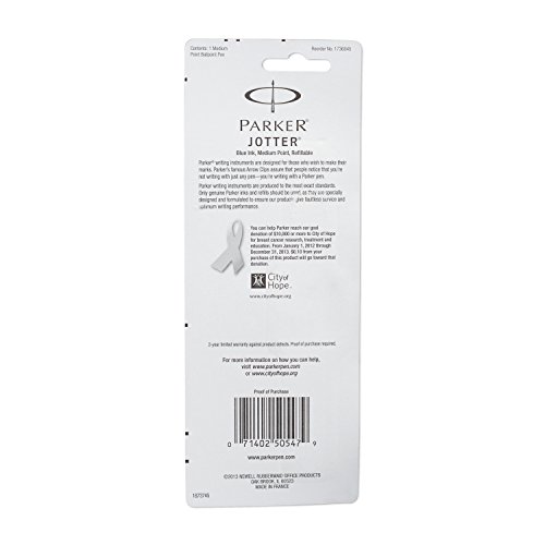 - Title : Parker Jotter Retractable Ballpoint Pen, Medium Point, Pink Ribbon Blue (1736845)