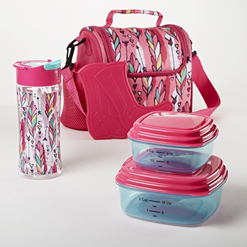 Fit & Fresh Melissa Insulated Lunch Bag with Reusable Container Set and 16oz Water Bottle (Pink Feather Toss)