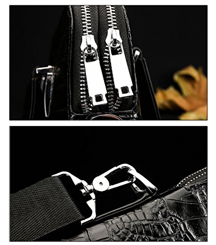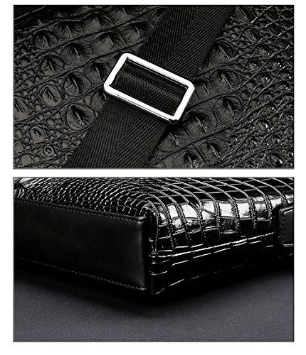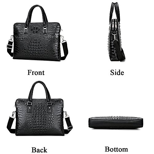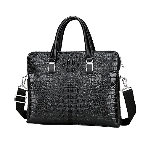 -. Feature : DIMENSIONS: (L)14.8" x (W)2.4" x (H)11.3" inch. As long as you purchase this Briefcase we will handsel a same type of Men's Clutch Wallet to you. / HIGH QUALITY MATERIAL: The briefcase is made of high quality genuine cow leather with durable polyester lining. The hardware parts are made of silver-color alloy, these make the leather handbags more luxury. Zipper closure for your security. / STRUCTURE: This briefcase contains 2 big compartment, 1 cell phone pocket, 1 inner zipper pocket.Secure and stylish single gusset construction expands for greater carrying capacity. The laptop bag easily holds your less than 16 inch laptop, iPad, iPhone, A4 file and other business things. / HAND MADE by professional artisans. Adjustable nylon long shoulder strap. Can be used as lawyers briefcase, shoulder bag, laptop bag, or hand carry functional briefcase. Fashion crocodile pattern design is unique and perfect for business men. / 100% Money Back Guarantee! If have any problem or don't satisfy, please contact us and we will refund all or resend a replacement.