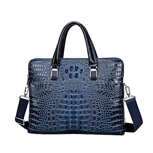 -. Title : Badiya Leather Crocodile Pattern Briefcase Laptop Handbag Messenger Bags for Men