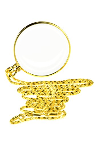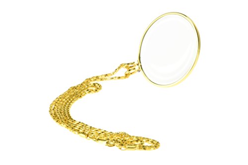- Feature : Magnification: 5.5x / Glass lens diameter: 1.75" / Optical quality glass lens / 36" Steel chain w/gold finish / Effective for viewing fine print & details