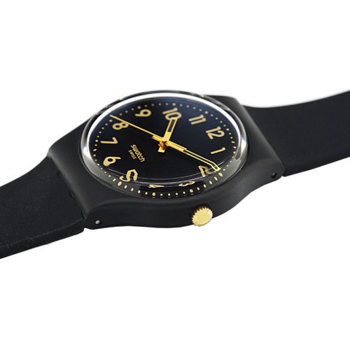 Swatch GB274 Golden Tac Black Gold Analog Dial Silicone Strap Unisex Watch NEW