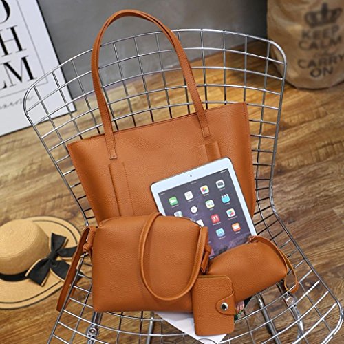 Studio : Thaibestus Publisher : Thaibestus Binding : Apparel Product Description Type: Handbag Set Material: Faux Leather Closure Type: Zipper Occasions: Daily Life, Office, Travel, Shopping, Party, etc Features: Solid Color, Large Capacity, 4 Pcs in 1 Set, Card Holder, Valentine's Day Gift Size Details [Large Handbag] Upper Width: 38cm/14.96", Lower Width: 27cm/10.63", Height: 29cm/11.42", Thickness: 13cm/5.12" (Approx.) [Shoulder Bag] Length: 19cm/7.48", Width: 6cm/2.36", Height: 16cm/6.30" (Approx.) [Clutch] Height: 7cm/2.76", Length: 14cm/5.51", Width: 4cm/1.57" (Approx.) Package Includes: 1 x Large Handbag 1 x Shoulder Bag 1 x Clutch 1 x Card Holder