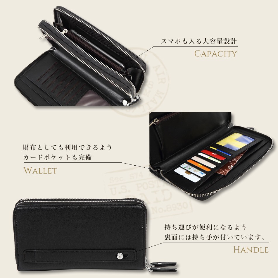 | 仕様 | お札入れ×2 小銭入れ フリーポケット×3 zip付きフリーポケット×1 カード入れ×7 |