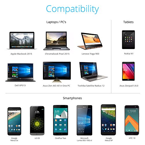 COMPATIBLE LAPTOPS/PC: Google Chromebook Pixel 2, Apple New MacBook, HP Pavilion x2 / HP Spectre x2, Lenovo Yoga 900, Asus Zen AiO All in One PC, Dell XPS 13 / Latitude 12, Toshiba Satellite Radius 12.