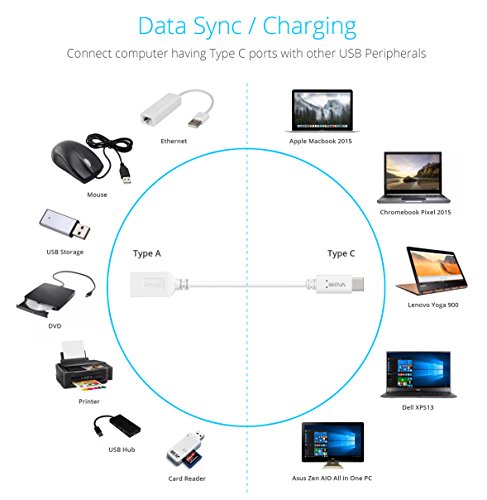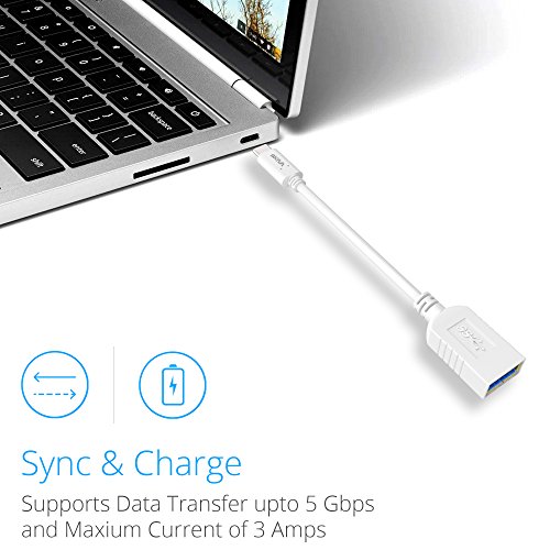 Skiva USB-C to USB-A Adapter, Converts USB Type-C input to Female USB-A 3.0, Uses 56K Resistor, Works with MacBook 2015, ChromeBook Pixel, Dell XPS 13; USB 3.1 OTG Cable for Nexus 5X 6P, LG G5, HTC 10