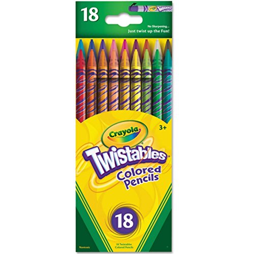 Studio : Crayola Twistables Colored Pencils, Assorted Colors 18 ea (20 packs) Publisher : Crayola Twistables Colored Pencils, Assorted Colors 18 ea (20 packs) Product Description Twistables Colored Pencils require no sharpening. When the tips get worn down-just twist them up and you're ready to keep on coloring. The clear plastic barrels keep them from breaking and make it easy to see how much color is left. 0