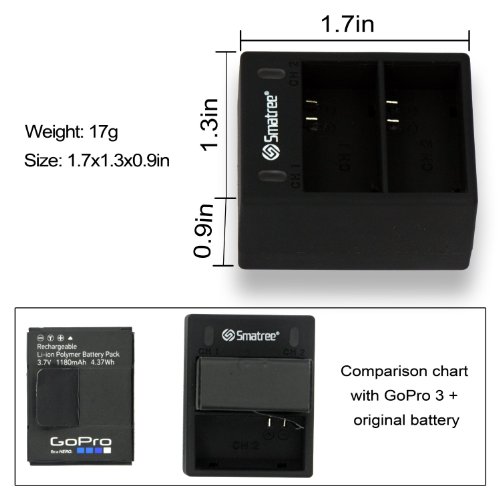 Smatree Batteries & Dual USB charger Power Supplies KitsIncludes 2 batteries, dual USB charger, and USB cord