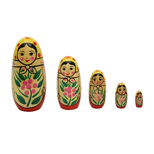-. Title : Set of 5 Channapatna Handmade Indian Wooden Russian Nesting Dolls - Matryoshka Stacking Nested Wood Dolls