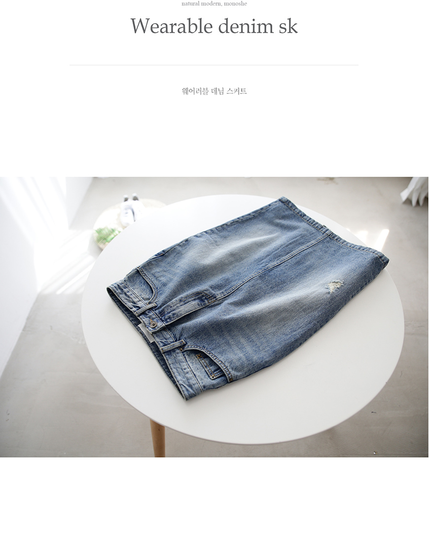 무릎 덮어지는 미디한 길이감의 데님 스커트예요~^^*
