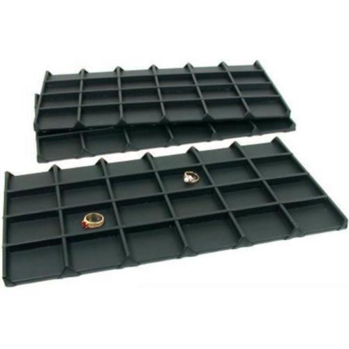 -. Title : 72 Slot Coin Jewelry Tray Black Leather Case Display