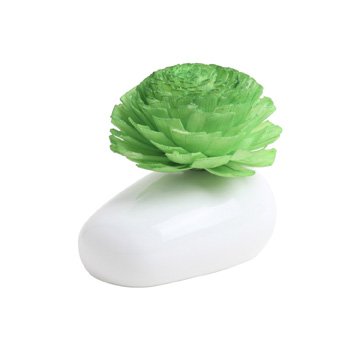Happiness glow reed diffuser is a floral green scented diffuser set which includes 1.69-ounce of diffuser oil in a white oblong-shaped bottle with one green flower reed.