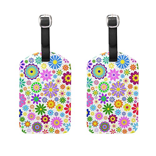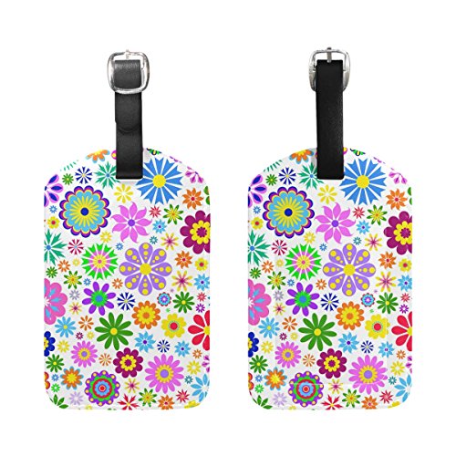 (My Little Nest)/Accessories/Luggage, Bags Travel/DIRECT FROM USA/Travel Luggage Tag Colorful Flowers White Background PU Leather Baggage Suitcase Tag Name Addre...