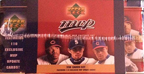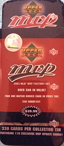 This is a 2003 Upper Deck MVP Baseball special edition factory sealed 330 card set packaged in a collector's tin. It includes the regular 220 card set MVP set plus 110 exclusive update cards found only in this factory set.