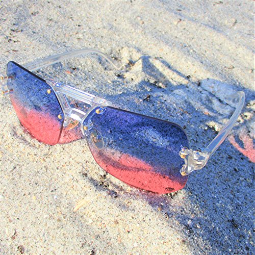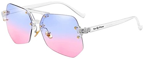 EXPECT COMPLIMENTS: SoFlow Rimless Oversized Sunglasses for Women / Men - Polarized Pink/Blue Lens