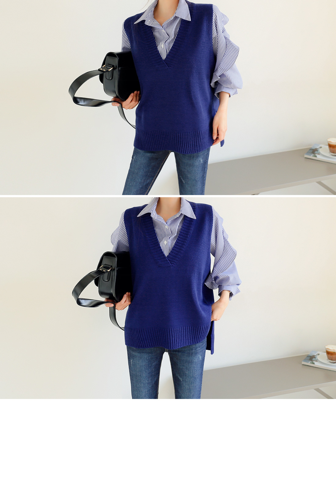 언발 디자인으로 좀더 유니크하게 연출하기좋은 니트 베스트