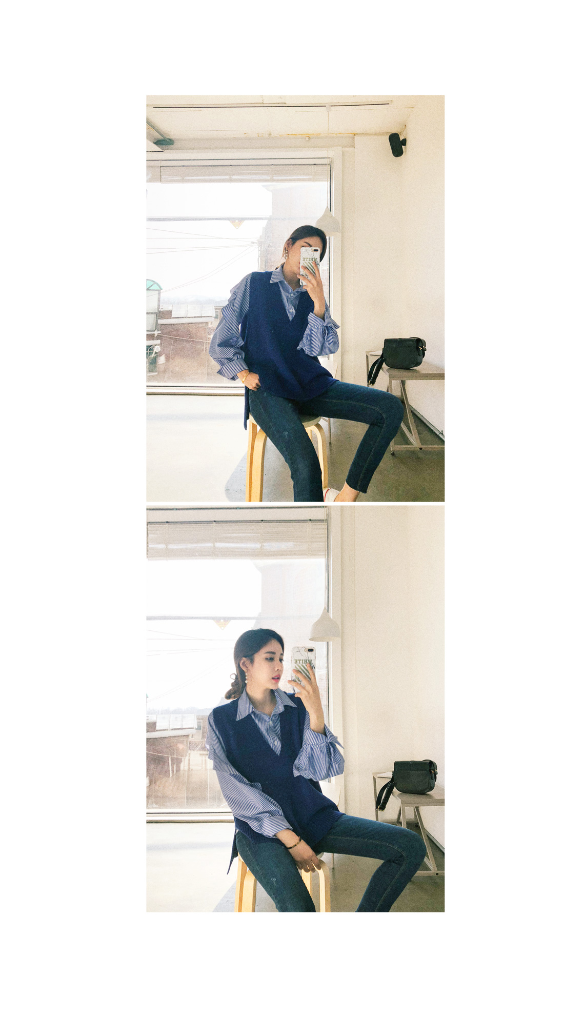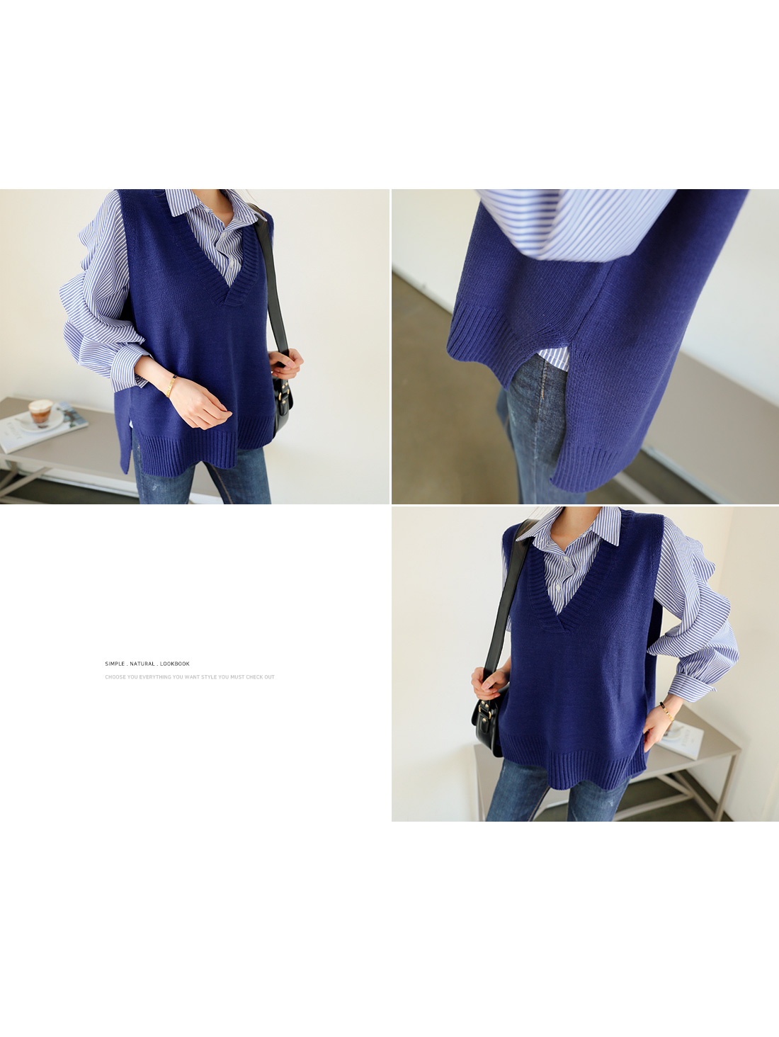 내추럴한 무드로 연출하기좋은 니트 베스트 인데요.