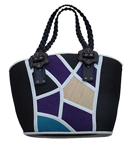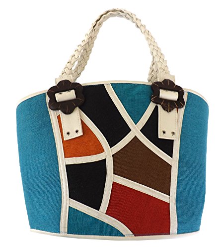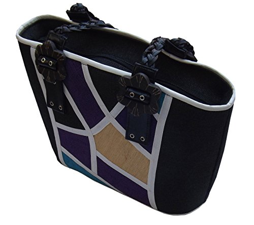 Product Description This handbag is handmade by artisans in the Philippines. The color is bright and cheerful yet suitable for everyday use. The outside of the purse is made of abaca fabric with a soft canvas-like texture. Abaca is a natural fiber made from banana leaves. Abaca is also the strongest natural fiber, making the bag plenty rugged. Its dimensions are 16.5 inches wide x 11 inches high x 4 inches deep The handle is synthetic leather with acacia wood buckles, a natural wood of the Philippines. The handle is adjustable through the four buckles. The front has multicolor splashes on a yellow background, while the back is solid bright yellow. The top has a zipper closure. The inside is lined with a matched yellow fine-textured and has a 6 inch by 5 inch pocket. 0