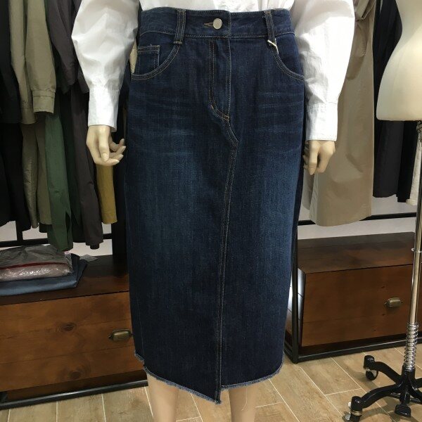 언발란스한 밑단기장이 유니크한 매력을 가득 담은 데님SK입니다^^ 허리라인은 잘록하게 잡아주며 슬림하게 떨어지는 H라인 핏이 마음에 쏘옥 드실 깔끔하고 베이직한 데님컬러로 기본티에는 물론, 블라우스나 셔츠 등 어떤 상의와도 스타일리시하게 코디되는 제품이에요~ 단독으로도 포인트 가득한 데님스커트로 밑단 수술이 포인트로 귀여운 느낌을 줍니다. 긴 뒷트임으로 활동하시는데 전혀 불편함 없이 살랑살랑 벌어지는게 편안하시고도 이뻐요 ~ 뒷트임은 26.5cm입니다. 구매시 참고부탁드려요~ 총장길이는 66사이즈 기준으로 73cm 입니다.