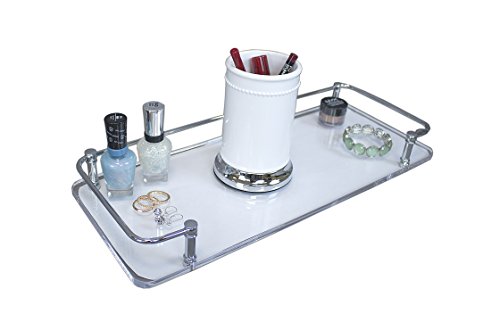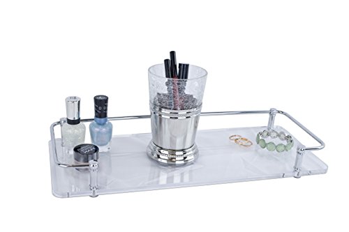 Ava - Style comes home - 6.5" x 16.5" Acrylic Vanity Tray - for Bathroom Countertop, Jewelry, Accessories and Make up - Armada Collection - Clear with Chrome Rails - Extra Large