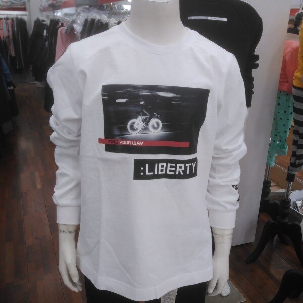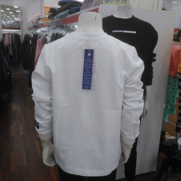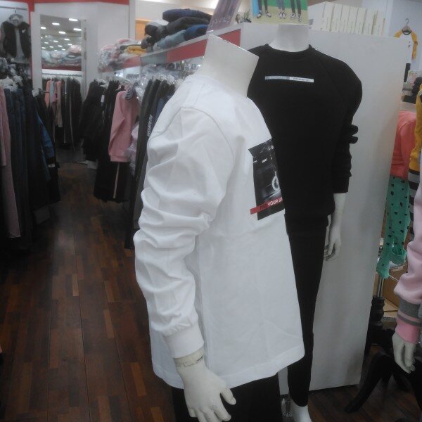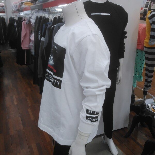 기본 화이트 티에 포인트 사진이 특색입니다.밋밋한듯 하지만 이너티로 입으셔도단독으로 입으셔도 깔끔합니다.